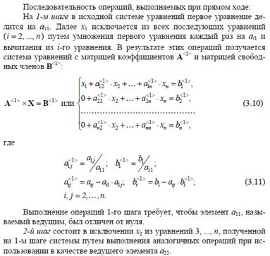 Ответ: К прямым относятся методы, позволяющие получить решение в результате конечного числа арифметических операций, зависящего только от вычислительной схемы, а также от порядка и структуры матрицы коэффициентов системы уравнений. В математике методы этой группы называются также точными, поскольку если исходные данные заданы точно и вычисления выполняются точно, то решение также получается точным. К итерационным относятся методы, с помощью которых решение системы линейных алгебраических уравнений получается как предел последовательных приближений, вычисляемых посредством единообразных операций. В математике итерационные методы называются приближенными, поскольку даже в предположении, что вычисления ведутся без округлений, они позволяют получить решение системы уравнений лишь с заданной точностью. Практически в основе всех прямых методов решения линейных алгебраических уравнений установившегося режима электрической системы лежит метод последовательного исключения неизвестных, называемый методом Гаусса. К числу наиболее характерных вычислительных схем этого метода относятся алгоритмы с обратным ходом и без обратного хода. Решение системы из n линейных алгебраических уравнений вида
