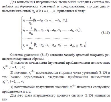 Ответ: К прямым относятся методы, позволяющие получить решение в результате конечного числа арифметических операций, зависящего только от вычислительной схемы, а также от порядка и структуры матрицы коэффициентов системы уравнений. В математике методы этой группы называются также точными, поскольку если исходные данные заданы точно и вычисления выполняются точно, то решение также получается точным. К итерационным относятся методы, с помощью которых решение системы линейных алгебраических уравнений получается как предел последовательных приближений, вычисляемых посредством единообразных операций. В математике итерационные методы называются приближенными, поскольку даже в предположении, что вычисления ведутся без округлений, они позволяют получить решение системы уравнений лишь с заданной точностью. Практически в основе всех прямых методов решения линейных алгебраических уравнений установившегося режима электрической системы лежит метод последовательного исключения неизвестных, называемый методом Гаусса. К числу наиболее характерных вычислительных схем этого метода относятся алгоритмы с обратным ходом и без обратного хода. Решение системы из n линейных алгебраических уравнений вида 1)на 1-м этапе (прямой ход) исходная система за n однотипных шагов преобразуется таким образом, что матрица коэффициентов преобразованной системы становится верхней треугольной, т. е. все элементы, расположенные ниже ее главной диагонали, равны нулю; 2)на 2-м этапе (обратный ход) последовательно определяются значения неизвестных от хn до х1.
