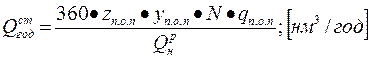 Степень охвата населения обслуживанием предприятиями общественного питания находят как долю от общей численности населения, считая при этом, что каждый житель, регулярно пользующийся предприятиями общественного питания, потребляет примерно один обед и один ужин (завтрак) в день. Степень охвата газоснабжением предприятий общественного питания уп.о.п . указывается в задании на их проектирование. Тогда расход теплоты в год предприятиями общественного питания: