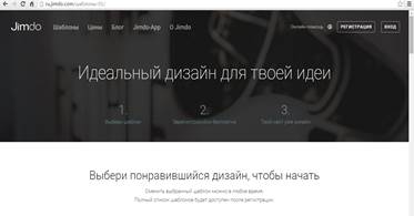 Рисунок 16. Начало создания сайта на ru.jimdo.com