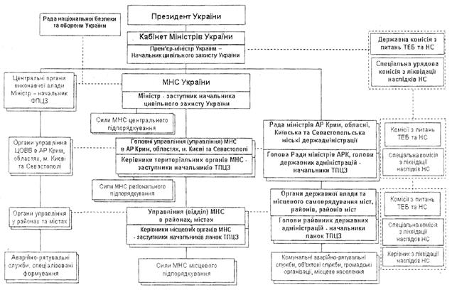 Рис. 7.2. Загальна схема органів управління в надзвичайних ситуаціях