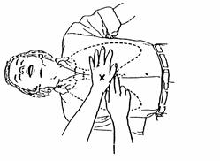 Рис. 8.1. Місце розміщення рук при виконанні зовнішнього масажу серця Таблиця 8.1.