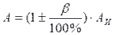 где АИ – измеренное значение величины; β – относительная погрешность измерения, учитывающая погрешность приборов, β пр – погрешность масштабных измерительных преобразователей β МП, если они применяются, и методическую погрешность β М, т.е.: β = β пр+ β МП+ β М. При нахождении результата прямых измерений относительную погрешность приборов β пр следует вычислять по их классам точности.