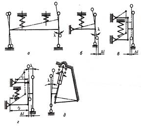 а — тә уелді; б— тә уелсіз бір тетікті; в, г — тә уелсіз екі тетікті бірдей жә не ә ртү рлі ұ зындық та; д — тетікті – телескопиялық тә уелді аспа