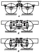 Сур.5.7 Бланасирлі аспалардың сұ лбасы: а— тө рт рессорлы балансирімен; б—екі рессорлы қ атты балансирлі балкасы бар; в— балансирлі рессоры жә не реактивті штангасы бар.