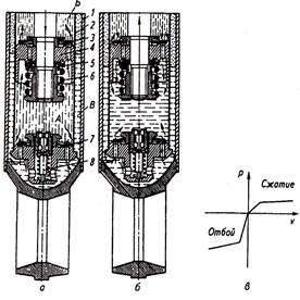 а— рессордың қ ысылуы; б—рессордың қ айтуы; в— Амортизатордың сипаттамасы; А, Б, В— жазық тық тар; 1—жұ мыс цилиндрі; 2—резервуар корпусы; 3— қ айта жіберу клапаны; 4— поршен; 5— қ айту клапаны; 6— серіппе; 7— сорушы клапан; 8— босатушы клапан. Рессорлардың қ ысылысы кезінде қ айта жіберуші клапан 3 арқ ылы А жазық тығ ыннан Б жазық тығ ына майды сығ у арқ ылы поршень 4 (5.8, а, сур) тө мен қ озғ алады. Поршеннің азғ ана жылдамдығ ында сұ йық қ айта жіберу клапанының тесігі арқ ылы ө теді, ал жоғ ары жылдамдығ ында қ осымша тү сіру клапанын ашады 8. клапандардың тесігі арқ ылы ө ткен сұ йық поршен қ озғ алысына кедергі келтіре отырып толастайды. Шток кө леміне сә йкес сұ йық тың кө лемі резервуардың корпусына ығ ысады. Қ айту жү ріс кезінде рессормен поршен жоғ ары қ арай қ озғ алады (5.8, б,) сұ йық клапанды 3 жабады, қ айту клапанын 5 ашады, сол кезде сұ йық тың Б жазық тығ ынан А жазық тығ ына ө туіне айтарлық тай кедергі туындайды. Шток кө леміне сә йкес босағ ан А жазық тығ ы резервуардағ ы сұ йық пен сорушы сораптың кө мегімен толтырылады. Ә дебиеттер: 1.нег.[308-346]; 2.нег [158-200]. Бақ ылау сұ рақ тары: 1. Раманың қ андай тү рлерін білесіздер? 2. жең іл автомобилдердің кузовтарының қ ұ рылымдық ерекшеліктерін ата. 3. Автобус кузовтарының жү ктемені қ абылдауы бойынша қ алай жіктейді? 4. шинаның геометриялық ө лшемдерін анық таушыларды ата. 5. екі еселенген доң ғ алақ тарды қ алай бекітеді? 6. тә уелді жә не тә уелсіз аспа несімен ерекшеленеді? 7. Реактивті тартқ ыштардың, амортизаторлардың, стабилизаторлардың қ ызметі неде?