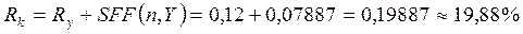 SFF – фактор фонда возмещения; Yб = безрисковая ставка процента. Пример. Инвестиционный проект предусматривает ежегодный (Re) 12%-ый доход на инвестиции в течение (n) 5 лет. Сумма в счет возврата инвестиций могут быть без риска реинвестированы по ставке 6%/ Решение: Фактор возмещения для 6% за 5 лет равен норме возврата капитала 0, 1773964, таким образом коэффициент капитализации равен: