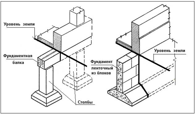 Рис. 4 Фундаменты сборные ж/б столбчатый пенькового типа и ленточный