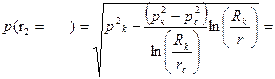 (для переходу до стандартних умов необхідно використати температуру 293, 15 К, нормальну температуру прийняти 273, 15 К). Визначаємо значення тиску для плоско-радіальної фільтрації на різних відстанях від свердловини: