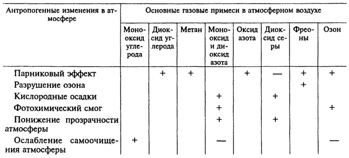 Антропогенные загрязнители атмосферы и связанные с ними изменения (В.А. Вронский, 1996)
