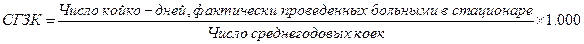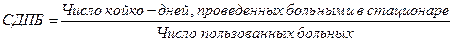 Вычисляется в целом по стационару и по отделениям. Средняя занятость койки в году для городских больниц 340 дней (без инфекционных и родильных), для сельских больниц - 310 дней. Меньший показатель свидетельствует о недогруженности коечного фонда (простое коек), более высокие значения показателя говорят о перегрузке стационара. 2) средняя длительность пребывания больного на койке (средняя длительность одной госпитализации)