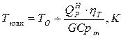 Таблица 12.3 – Зависимость температуры газов на перевале Тп от максимальной температуры горения Тmax, параметра qs = Q/Hs и температуры θ