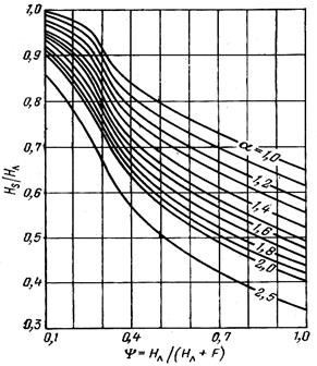 Таблица 12.4 – Зависимость отношения Hs/Hл от степени экранирования ψ и коэффициента избытка воздуха α