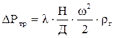 где λ – коэффициент гидравлического сопротивления, определяемый по выражению