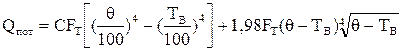 где С – постоянная излучения поверхности трубы, С=4, 2…4, 6 Вт/(м² × К4) [4, с.141]; Fт - боковая поверхность трубы, м². Q - средняя температура стенки, К, определяемая по уравнению