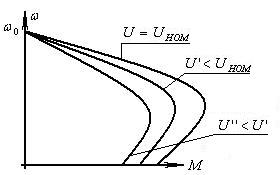 При снижении напряжения: а) уменьшается критический момент б) уменьшается пусковой момент в) снижается жесткость характеристик в рабочей части. 3.