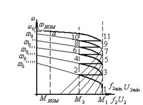 Рис.51 Семейство пусковых характеристик АД при изменении частоты