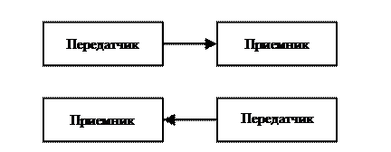Рис. 1. Симплексный метод передачи Полудуплексный режим - попеременная передача информации, когда источник и приемник последовательно меняются местами (рис. 2). Яркий пример работы в полудуплексном режиме - разведчик, передающий в Центр информацию, а затем принимающий инструкции из Центра.