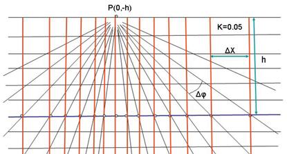 K – постоянный коэффициент, зависящий от способа разбиения лучами. Точность расчетов будет тем больше, чем меньше Δ φ, и чем длиннее профиль и интервал палетки по оси x.