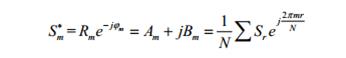 Амплитудный спектр описывает распределение амплитуд по различным частотам. Фазовый спектр показывает отклонение фазы определенной частоты относительно начала отсчета. По амплитудному и фазовому спектрам можно получить выражение для комплексного спектра: -комплексный спектр Sm представляет комплексное число:
