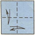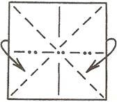 Перегните квадрат 2. Перегните по 3. Сгибайте пополам, переверните диагонали. одновременно по Его. намеченным линиям.