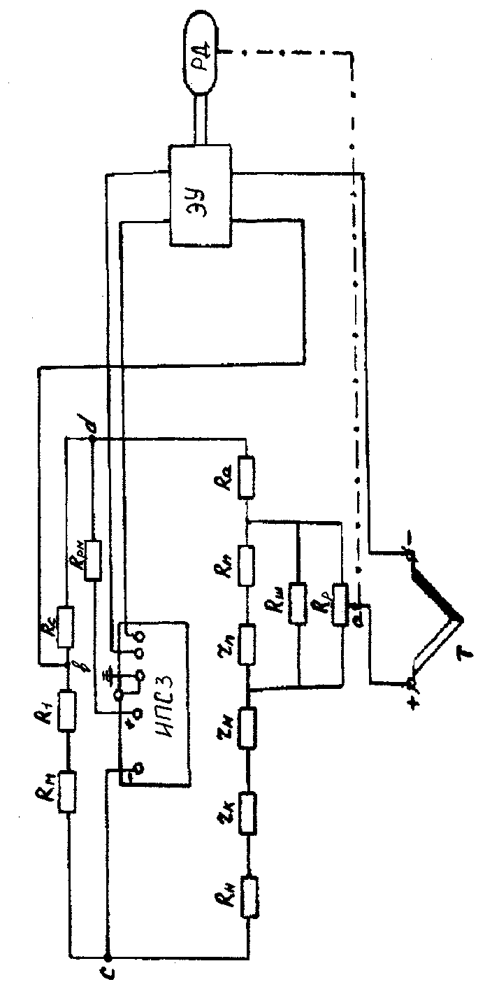 Измеряемая т.э.д.с. термопары E(tt'0) уравновешивается разностью потенциалов в точках а и b измерительной схемы потенциометра т.е. падением напряжения на части общего сопротивления реохорда Rоб - состоящего из трех параллельно включенных сопротивлений Rр, Rш, Rт и на сопротивлениях: (Rн + rк + rн) и (Rм + R1), E(tt'0) = i2Rоб + i2 (Rн + rк + rн) – i1 (Rм + R1), (1) где t - температура рабочего спая термопары; t' - температура свободного спая термопары; Rоб - часть приведенного сопротивления реохорда между точками а и b измерительной схемы, величина которого зависит от положения движка реохорда. При соблюдении равенства (1) напряжение небаланса на электронный усилитель подаваться не будет. При этом движок реохорда неподвижен, а стрелка прибора показывает измеряемое значение т.э.д.с. термопары. В случае нарушения равенства (1) на выходе измерительной схемы появляется напряжение небаланса, которое подается на вход электронного усилителя, где усиливается по напряжению и мощности. С выхода усилителя сигнал поступает на реверсивный двигатель РД. Реверсивный двигатель, вращаясь по часовой стрелке или против нее (в зависимости от знака небаланса), передвигает движок реохорда, и тем самим устанавливает равновесие измерительной схемы. Одновременно РД перемещает показывающую стрелку и записывавшее перо.