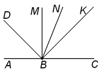 5. За малюнком вкажіть, який із промінів є бісектрисою кута АВМ. А) BD; Б) BN; В) BK; Г) DB.