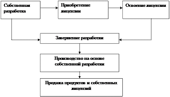 Рис. 9.2 Линейная модель преобразования лицензионной технологии в собственную