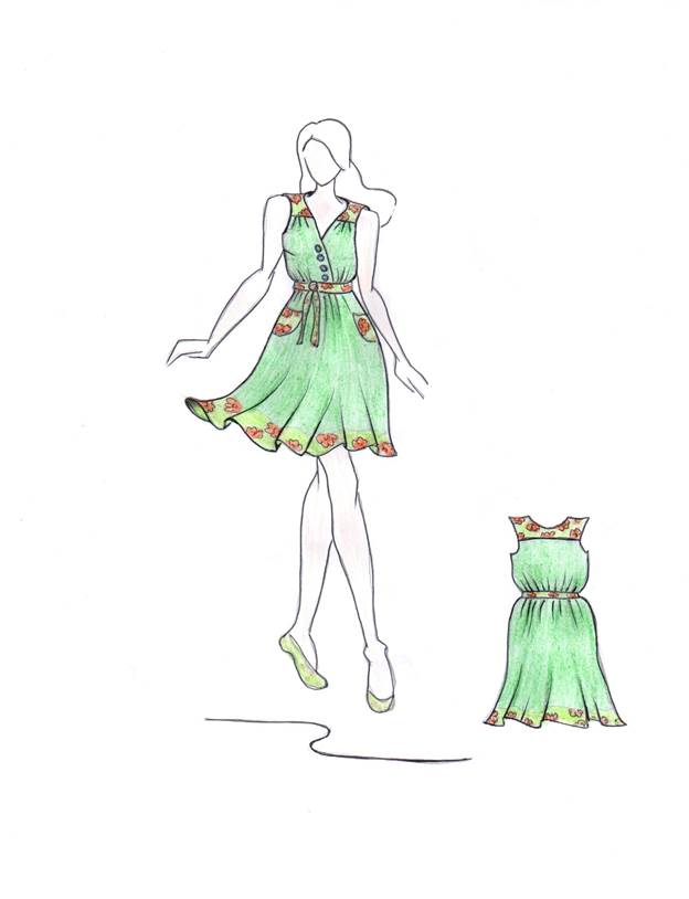А ү лгісінің сипаттамасы (сурет 4). 1. Бұ йымның аталуы, арнайы қ ызметі, матасы: Қ ыздарғ а арналғ ан жібек матадан тігілген кү нделікті кө йлек. 2. Бұ йымның силуэті, пішімі, тү ймеленуі: Кө йлек жартылай қ ынамалы силуэтті, ұ зындығ ы тізеден жоғ ары, пішімі – қ ондырмалы, сол жақ бү йір шетінде жасырын сыдырма ө ң делген. 3. Кө йлектің алдың ғ ы бойының сипаттамасы: Кө кірек пен белдемшеден тұ рады, иық тан беліне дейін бедер тігісі жү ргізілген.Алдың ғ ы бой екі бү йір шетінен жә не ортаң ғ ы бө ліктен тү седі. 4. Кө йлектің артқ ы бойының сипаттамасы: Артқ ы бой ортаң ғ ы жә не екі шеткі бө ліктен тұ рады. 5. Жең інің сипаттамасы: Жең і жоқ. 6. Жағ асының сипаттамасы: Жағ асы жоқ. 7. Бұ йымның астарының сипаттамасы: Кө йлек астарсыз. 8. Сә нді элементтерінің сипаттамасы: Мойын жә не қ олтық ойындысы лентамен ө ң делген. 9. Ұ сынылатын ө лшемдер: 164-165 бой, 44-46. Б ү лгісінің сипаттамасы (сурет 5). 1. Бұ йымның аталуы, арнайы қ ызметі, матасы: Жас қ ыздарғ а арналғ ан жібек матадан тігілген кү нделікті кө йлек. 2. Бұ йымның силуэті, пішімі, тү ймеленуі: Кө йлек жартылай қ ынамалы силуэтті, ұ зындығ ы тізеден жоғ ары, пішімі – қ ондырмалы, сол жақ бү йір шетінде жасырын сыдырма ө ң делген. 3. Кө йлектің алдың ғ ы бойының сипаттамасы: Кө кірек пен белдемшеден тұ рады, иығ ында иінш тігісі бар, белі негізгі матадан тігілген белдікпен жиырылады жә не 2 жапсырмалы қ алта ө ң делген. 4. Кө йлектің артқ ы бойының сипаттамасы: Артқ ы бойдың жауырын тұ сында иініш тігісі бар. 5. Жең інің сипаттамасы: Жең сіз. 6. Жағ асының сипаттамасы: Жағ асы жоқ, мойын ойындысы ү шбұ рышты. 7. Бұ йымның астарының сипаттамасы: Кө йлек етегіне дейін астарланғ ан – астары жабық тү рде ө ң делген. 8. Сә нді элементтерінің сипаттамасы: Белдік бар. 9. Ұ сынылатын ө лшемдер: 164-165 бой, 44-46. В ү лгісінің сипаттамасы (сурет 6). 1. Бұ йымның аталуы, арнайы қ ызметі, матасы: Жас қ ыздарғ а арналғ ан букле матадан тігілген кү нделікті кө йлек. 2. Бұ йымның силуэті, пішімі, тү ймеленуі: Кө йлек жартылай қ ынамалы силуэтті, ұ зындығ ы тізеден жоғ ары, пішімі – қ ондырмалы. 3. Кө йлектің алдың ғ ы бойының сипаттамасы: Кө кірек пен белдемшеден тұ рады, қ олтық ойындысынан тү скен бү кпелер бар, 2 жарма қ алта жә не 6 тү ймесі бар. 4. Кө йлектің артқ ы бойының сипаттамасы: Артқ ы бой ортаң ғ ы тігісімен екі бө ліктен тұ рады, бел бү кпелері бар. Етегінде жырық бар. 5. Жең інің сипаттамасы: Жең і қ ондырмалы тө иен тү скен. 6. Жағ асының сипаттамасы: Жағ асы жоқ, мойын ойындысы дө ң геленген. 7. Бұ йымның астарының сипаттамасы: Кө йлек етегіне дейін астарланғ ан – астары жабық тү рде ө ң делген. 8. Сә нді элементтерінің сипаттамасы: Мойын ойындысы мен жең інде сә нді лента ө ң делген. 9. Ұ сынылатын ө лшемдер: 160-163 бой, 44-46. Г ү лгіснің сипаттамасы (сурет 7). 1. Бұ йымның аталуы, арнайы қ ызметі, матасы: Жас қ ыздарғ а арналғ ан креп – сатин матадан тігілген кү нделікті кө йлек. 2. Бұ йымның силуэті, пішімі, тү ймеленуі: Кө йлек жартылай қ ынамалы силуэтті, ұ зындығ ы тізеден тө мен, пішімі – қ ондырмалы, сол жақ бү йір шетінде жасырын сыдырма ө ң делген. 3. Кө йлектің алдың ғ ы бойының сипаттамасы: Кө кірек пен белдемшеден тұ рады, белінен тү скен бү кпелер бар, белі негізгі матадан тігілген белдікпен жиырылады. 4. Кө йлектің артқ ы бойының сипаттамасы: Артқ ы бойда қ олтық ойындысынан беліне дейін тү скен бедер тігісі бар. 5. Жең інің сипаттамасы: Жең і жоқ. 6. Жағ асының сипатта
