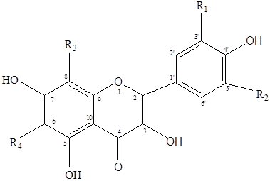 R1, R2, R3, R4 – -ОН немесе -ОСН3 немесе гликозидтер.