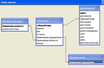 3. Выполните команду меню Сервис ® Схема данных, просмотрите создавшиеся связи, при необходимости измените в соответствии с рисунком.