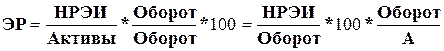 ЭР = НРЭИ / Активы Преобразуем формулу экономической рентабельности, умножив ее на оборот, в результате чего проявятся два важнейших элемента рентабельности: коммерческая маржа (КМ) и коэффициент трансформации (Кт).