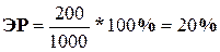 Возьмем два предприятия с одинаковым уровнем экономической рентабельности, например, 20 %. Единственное различие между этими предприятиями состоит в том, что одно из них (А) не пользуется заемными средствами, а другое (Б) привлекает в той или иной форме заемные средства. У предприятия А: актив – 1000 тыс. грн.; пассив – 1000 тыс. грн. собственных средств. У предприятия Б: актив –1000 тыс. грн.; пассив – 500 тыс. грн. собственных средств и 500 тыс. грн. заемных средств (кредитов и займов). Нетто-результат эксплуатации инвестиций у обоих предприятий одинаковый: 200 тыс. грн. Таким образом, предприятие А получает 200 тыс. грн. прибыли до налогообложения исключительно благодаря эксплуатации собственных средств, которые покрывают весь актив. Рентабельность собственного капитала такого предприятия составит: