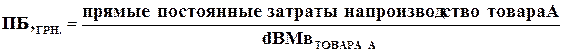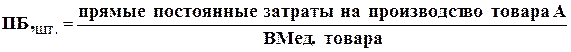 Соответственно можно определить пороговое количество товара, которое должно быть реализовано, чтобы обеспечить порог рентабельности: