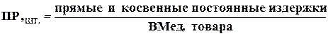 Также можно по другому трактовать порог рентабельности товара. Порог рентабельности товара — это такая выручка от реализации, которая покрывает не только переменные и прямые постоянные затраты, но и отнесенную на данный товар величину косвенных постоянных затрат. При этом прибыль от данного товара равна нулю.