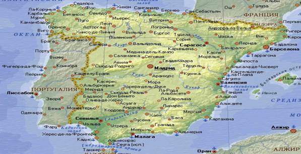Испания картасы ИСПАНИЯ ТУРАЛЫ МӘ ЛІМЕТ Испания (ис. Espaṅ a), Испания патшалығ ы – Еуропаның Оң тү стік-батысында орналасқ ан мемлекет.Пиреней тү бегінің кө п бө лігін жә не Жерорта тең ізіндегі Балеар, Питиус аралдары мен Атлант мұ хитындағ ы Канар аралдарын иеленеді. Жер кө лемі 505, 9 мың км2.. Испанияғ а, сондай-ақ, Солтү стік Африка жағ алауларындағ ы Сеут жә не Мелилья қ алалары мен оларғ а жақ ын жатқ ан Велесде-ла-Гомера, Алусемас, Чафаринас аралдары да қ арайды. Халқ ы 46, 1 млн. (2011). Негізінен, испандар, католондар (5 млн-нан астам), галисилер (3 млн.), баскилер (2 млн-нан астам), т.б. Қ ала халқ ы 76, 79%. Ресми тілі – испан тілі. Автономиялық қ ұ рылымдарда католон, баски, галиси, т.б. тілдер қ олданылады. Ел 17 автономиялық қ ұ рылымдардан тұ рады. Халқ ы, негізінен, католик дінін ұ станады. Астанасы – Мадрид қ аласы (5 млн.). Бұ ғ ан қ оса Барселона (1, 8 млн.), Валенсия (1 млн.), Севилия (750 млн.), т.б. ірі қ алалары бар. Ұ лттық мейрамы 12 қ азан – Испан ұ лты кү ні (Христофор Колумбтың 1492 жылы Американы ашқ ан кү ні). Ұ лттық ақ шасы – песета.