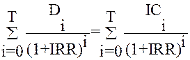 по системе международных показателей Мировая экономическая практика давно выработала методы оценки инвестиционных предпринимательских проектов, которые учитывают все возможные условия их реализации. Однако не требуется применять все оценочные показатели во всех проектах, поскольку они очень сильно отличаются друг от друга. Для любого из них могут быть годны лишь те показатели, которые будут учитывать его индивидуальные особенности. Показатель внутренней нормы доходности. Внутренняя норма доходности характеризует величину чистой прибыли (чистого валового дохода), приходящуюся на единицу инвестиционных вложений, получаемой инвестором в каждом временном интервале жизненного цикла проекта. Методически расчёт внутренней нормы доходности осуществляется по следующим формулам: