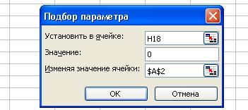 где doxi – доходы по годам, ICi – инвестиции по годам, j – банковская процентная ставка, n – срок действия инвестиции. 2. Порядок выполнения расчета в EXCEL: 1. В ячейку A1 вводим заданную величину цены капитала (в долях от 1) 2. В ячейку A2 вводим произвольную первоначальную величину внутренней нормы доходности проекта А (например 3. В ячейку A3 вводим произвольную первоначальную величину внутренней нормы доходности проекта Б (например 4. В ячейку B2 вводим цифру 5. В ячейку С2 вводим заданное значение инвестиции в проект А 6. В ячейку D2 вводим заданное значение инвестиции в проект Б 7. Устанавливаем курсор в ячейку E2 и вводим формулу для определения текущей стоимости доходов и инвестиций по годам 8. Ячейки D2 9. Выделяем ячейки D2 10. Устанавливаем курсор в ячейку H2 и вводим формулу для определения текущей стоимости доходов и инвестиций по годам при произвольно принятом значении IRR (0, 1) для проекта А 11. Ячейки H2 12. Выделяем ячейки H2 13. Устанавливаем курсор в ячейку I2 и вводим формулу для определения текущей стоимости доходов и инвестиций по годам при произвольно принятом значении IRR (0, 1) для проекта Б 14. Ячейки I2 15. Выделяем ячейки I2 16. Устанавливаем курсор на ячейку H18, вызываем программу «подбор параметра» (сервис