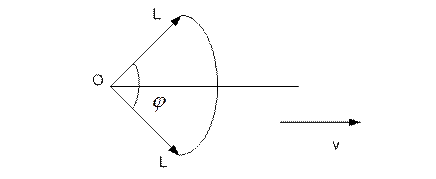 Точка «О» соответствует источнику заражения; угол j = 180°; радиус полуокружности равен L; биссектриса угла совпадает с осью следа облака и ориентирована по направлению ветра. При скорости ветра по прогнозу больше 1 м/с зона заражения имеет вид сектора: