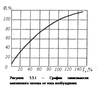 График зависимости магнитного потока от тока возбуждения приведен на рис. 5.5.1.