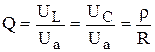 3. Сопротивление каждого из реактивных элементов при резонансе хL=xC не зависит от частоты, называется характеристическим сопротивлением цепи (волновое сопротивление) xCрез = хLрез; 4. Величины напряжений на активном, индуктивном, емкостном сопротивлениях могут быть определены Ua=I× R; UL=I× xL; Uc=I× xC, т.к. хL=xC, то UL=Uc=rI. Векторная диаграмма тока и напряжений приведена на рис.1. 5. Отношение напряжения на индуктивности или емкости к напряжению, приложенному к цепи, при резонансе называют добротностью контура или коэффициентом резонанса.