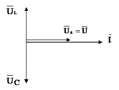 Рис. 2 Векторная диаграмма тока и напряжений в момент резонанса. В рассматриваемой лабораторной работе явление резонанса напряжений получают изменением индуктивности, емкости, частоты входного сигнала.