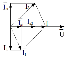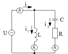 Рассмотрим электрическую цепь, состоящую из параллельно включенных ветвей, содержащих активное, индуктивное и емкостное сопротивления (рис. 1). Частный случай