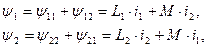 где М - взаимная индуктивность (коэффициент взаимоиндукции), которую обычно считают алгебраической величиной. Это означает, что для выбранной маркировки зажимов катушек величина М положительна, если при выбранных направлениях токов i1 и i2 результирующие потокосцепления y1 и y2 больше соответствующих потокосцеплений самоиндукции y11=L1× i1 и y22=L2i2. И, наоборот, М - отрицательно, если y1 < y11 и y2 < y22. Если же перенести маркировку с одного зажима данной катушки на другой, то знак М изменяется на противоположный. Отсюда следует вывод: нельзя говорить о знаке М без указания тех маркированных зажимов, для которых определяется величина М. Два зажима, принадлежащие двум разным катушкам, называют одноименными и обозначают одинаковыми значками, если при одинаковом направлении токов относительно одноименных зажимов потокосцепления самоиндукции и взаимной индукции суммируются. Для таких зажимов М > 0. При экспериментальном определении М для одной пары катушек поступают следующим образом. Вначале Уравнения напряжений для индуктивно связанных элементов (рис. 1.б):