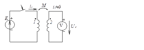 Найти одноименные зажимы катушек можно на основании простого опыта, для которого требуется источник постоянного напряжения и вольтметр магнитоэлектрической системы. К одной из катушек (например, ко второй) присоединяют вольтметр, а к другой подключают источник (рис.2). При замыкании ключа на зажимах 2-й катушки возникает напряжение: