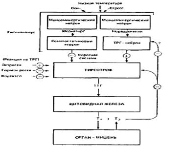 Рисунок 1. Схема регуляции гипоталамо-гипофизарно-тиреоидной системы