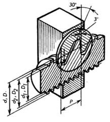 A. профилдің бү йір жақ тарынның қ иылысу нү ктелерінің ара қ ашық тығ ы; B. бұ ранда осіне перпендикуляр бағ ыттағ ы профилдің ұ шы мен ойысының арасындағ ы қ ашық тық; C. профилдің бү йір жақ тарын қ иылысқ анғ а дейін ұ зарту кезінде алынғ ан ү шкір бұ рышты профильдің биіктігі; D. бұ ранда осіне перпендикуляр бағ ыттағ ы ішкі жә не сыртқ ы бұ рандалар профилінің жанасу биіктігі; E. бір айналыс жасағ ан кездегі вмнттің осьтік қ озғ алыс шамасы.