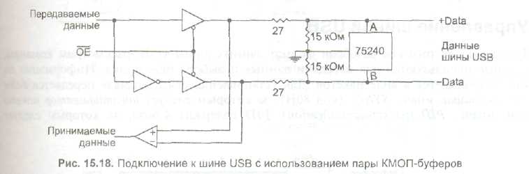 12.9-сурет. USB шинасына КМОП-буфері жұ бын қ олданып қ осылу Бұ л кестеде дифференциалды сызық тың орнына Texas Instruments фирмасы шығ арғ ан 75773 интегралды микросхема қ олданылады. Келесі этапта сигналдардың USB шинасында араласуын қ арастырамыз.