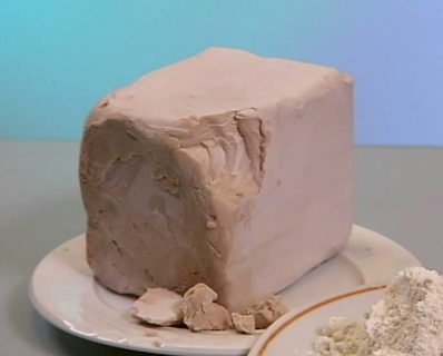 Мал.5. Охолоджена риба Борошно Якість борошна оцінюють за кольором, смаком, запахом, вологості та крупності помелу, змісту домішок і хлібопекарським властивостями. Колір характеризує сорт борошна. Визначають колір за еталоном або приладом фотолітром (цветомер). Смак борошна злегка солодкуватий, без кислуватого. Не допускається борошно з пліснявим або затхлим запахом, гірким або явно вираженим смаком, заражена шкідниками хлібних запасів. Масова частка вологи до 15%. Сухе борошно, стисла в руці, після разжатия повинна розсипатися. Борошно з підвищеною вологістю гірше зберігається, має меншу водопоглотительной здатністю, це зменшує вихід виробів. Зольність борошна характеризує і сортову приналежність: чим більше в борошні відрубних частинок, тим вище її зольність. Крупність помелу визначається просіюванням борошна на ситах. Чим більше частинки борошна, тим повільніше набухають білки. У борошні тонкого помелу набухання білків і розщеплення крохмалю йдуть швидше. Хлібопекарські властивості борошна характеризуються якістю і кількістю клейковини. При визначенні якості клейковини враховуються колір, еластичність, розтяжність і пружність. Для пісочного тіста використовують борошно з слабкою та середньої клейковиною. За кольором, вона темна, липка, короткорвущаяся, тому тісто не пружне, розпливчасте, втрачає форму. Проміжна за якістю клейковина характеризується як середня. Кількість клейковини в борошні нормується стандартом. Цукор Це білий кристалічний порошок, що виробляється з цукрової тростини і цукрового буряка. Цукор - пісок містить 99, 7% сахарози і 0, 14% вологи, у воді розчиняється повністю, не має стороннього присмаку і запаху, на смак солодкий, на дотик сухою. Зберігають цукор в сухому вентильованому приміщенні при відносній вологості повітря не вище 70%, інакше він відволожується, стає липким і утворює грудки. Борошняним кондитерським виробам цукор надає смак, підвищує їх калорійність і змінює структуру тесту. Цукор обмежує набухання клейковини, тим самим знижуючи водовбирну здатність борошна і зменшуючи пружність тіста. Підвищена кількість цукру розріджує тісто, вироби виходять склоподібним. Перед використанням цукор просівають через сито з чарунками не більше 3 мм, можна використовувати просеиватель для борошна. Цукрові сиропи повинні бути безбарвними і прозорими. Розчинність цукру у воді залежить від температури. В 1 літрі холодної води розчиняється максимально 2 кг цукру, а в гарячій, до 5 кг. Сиропи перед використанням проціджують через сито з чарунками не більше 1, 5 мм. Дріжджі повинні мати високу бродильну активність, швидко зброджувати сахари тіста. Здатність дріжджів зброджувати моносаха- ри визначають по зимазній активності і підйомній силі. Про здатність дріжджів зброджувати мальтозу судять по мальтозній активності. Дріжджі (мал 6). повинні мати низьку осмочутливість, добре переносити високі концентрації цукру і солі в середовищі. Важливим показником є стійкість дріжджів при зберіганні. Дріжджі зі зниженою стійкістю швидко втрачають ферментативну активність. Хлібопекарські дріжджі, що відповідають вимогам стандарту, повинні мати сіруватий з жовтуватим відтінком колір, без жовтих плям на поверхні. Консистенція дріжджів щільна, вони повинні легко ламатися, а не мазатися. 56 Запах і смак дріжджів - влас