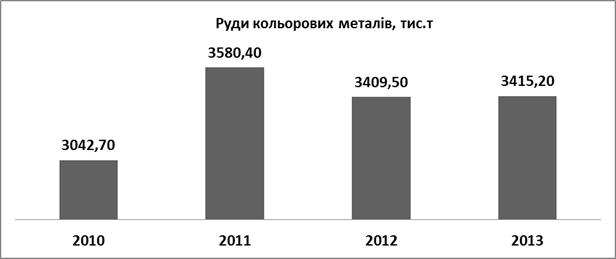Рис. 2.4 Динаміка вантажопотоку руд кольорових металів